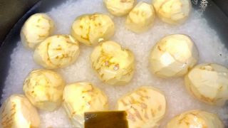 昆布、酒、塩で炊きました。